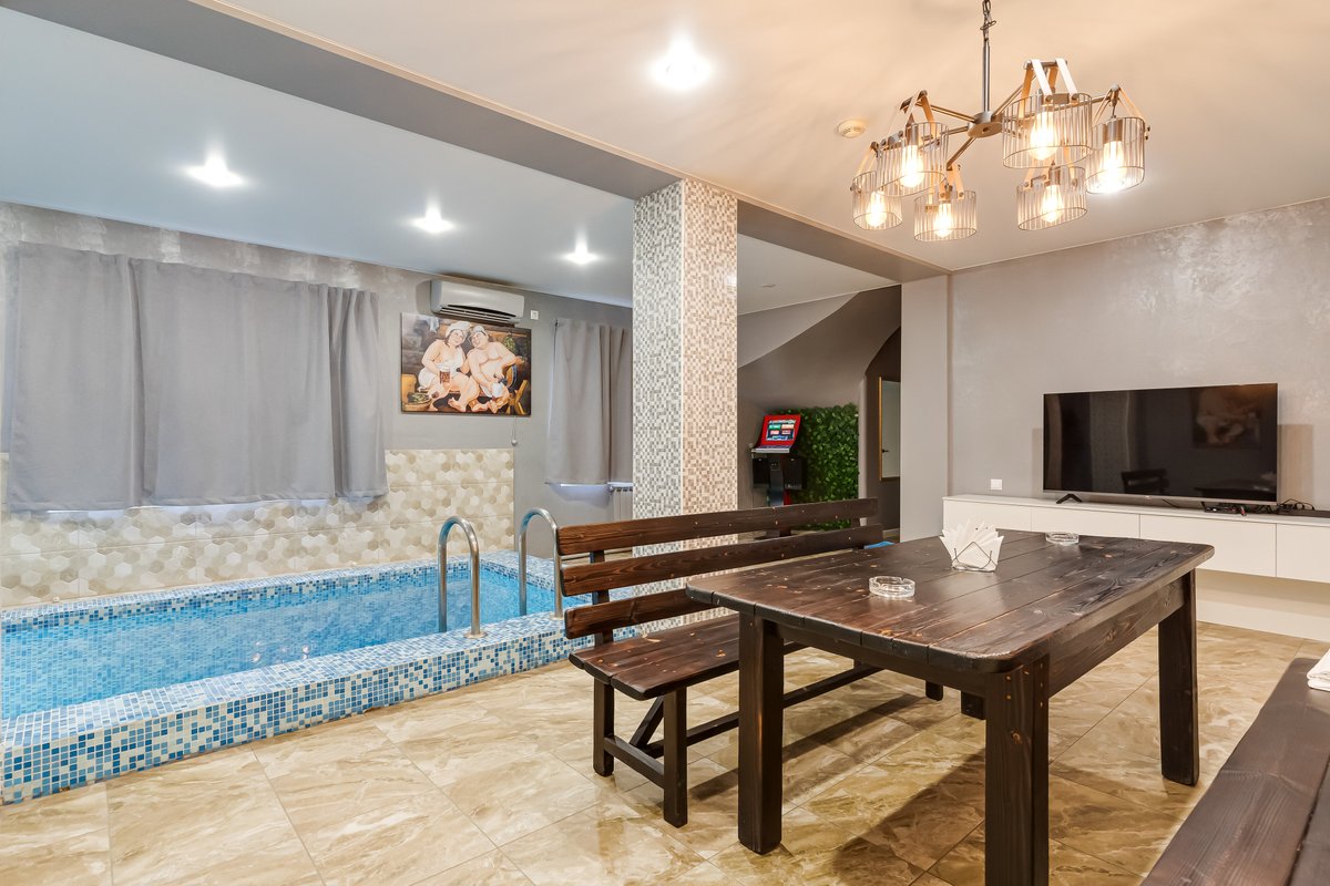 Понравилась парилка и обстановка, чистота помещений, хорошо оформлен бассейн с мозаикой и музыкальным аппаратом с 2-мя колонками перед бассейном. Были изначально забронированы на 3 часа, потом продлили время до 4-х или 5-ти часов. Это был приятный отдых с друзьями, когда товарищ приехал в гости ко мне в госпиталь.